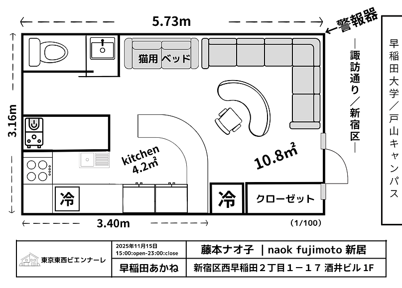 日時(Date):2025/11/15/Sat/15:00頃〜23:00(終電迄・宿泊不可)